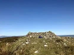 A trig point was used to mark the summit, but has since been destroyed. To the south is Pen Bwlch Llandrillo, followed by Cadair Bronwen.[2] It is the highest peak in the Clwydian Range and Dee Valley Area of Outstanding Natural Beauty.