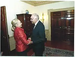Amr meeting Secretary of State Hillary Clinton at the US State Department in September 2011