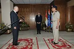 Amr being sworn in as foreign minister by Field Marshall Tantawi in July 2011