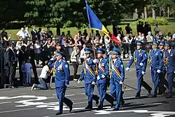On 3 September, the National Army marks its professional holiday, Ziua Armatei Naționale (Day of the National Army). The President of Moldova as well as the Prime Minister of Moldova[25] usually present congratulations to all active servicemen. On September 2, the Ministry of Defense organizes large demonstrations on the occasion of holiday.[26] Military and civilian staff lay flowers at the Stephen the Great Monument and the Eternity Memorial Complex. There is also a ceremony of the decoration of state and National Army distinctions, as well as honor diplomas to the best military and civilian employees. Festive activities are also organized in Balti, Cahul, Edineţ and Ungheni, in common with the local public administrations.[27] In 2018, the National Army Day silver jubilee celebrations were held at the base of the 1st Motorized Infantry Brigade "Moldova" in Bălți.[28]