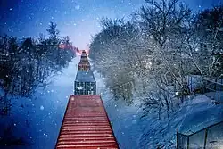 Moncton was placed on the Trans-Canada Highway network in the early 1960s after Route 2 was built along the city's northern perimeter. Later, the Route 15 was built between the city and Shediac.[28] At the same time, the Petitcodiac River Causeway was constructed.[14] The Université de Moncton was founded in 1963[29] and became an important resource in the development of Acadian culture in the area.[30]