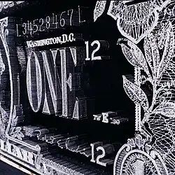 Detail, Dollar Bill (2006), nails, silver thread and resin on black wood