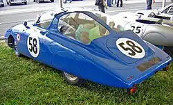 In 1950 Panhard increased their involvement in racing, but indirectly, by offering parts and technical support to different racing teams. Monopole availed themselves of this to design a new racing car that used Panhard's air-cooled flat twin engine designed by Louis Delagarde. The car also used the front-wheel drive chassis of the Panhard Dyna X, suitably modified.[12][13] The car was designed by Monopole's Pierre Bourdereau, who produced a very compact barquette, although due to its full-width ponton-style bodywork the car is often referred to as a tank, as are some other Monopoles. The naming convention for Monopole's Panhard-based racing cars followed that used for the various Dyna X models.