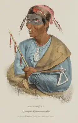 Monoquet (c. 1775 – 1836) was a Potawatomi chief in the early 19th century who led a band in what is now Kosciusko County, Indiana.[1] He and his ancestors had been gradually displaced from their ancestral lands in the Great Lakes region by encroaching white settlements, including those in Michigan, contributing to their relocation into the Indiana Territory. As a leader, Monoquet fiercely resisted further displacement; he harbored deep mistrust of white settlers and worked tirelessly to maintain his tribe's autonomy longer than many other Native leaders of his era.[2]