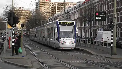 RR4 De Uithof - Beresteinaan - Bouwlustlaan - De Rade - Dedemsvaart - Zuidwoldepad- Leyenburg - Monnickendamplein - Tienhovenselaan - Dierenselaan - De la Reyweg - Monstersestraat - HMC Westeinde - Brouwersgracht - Grote Markt - Spui - Den Haag Centraal - Beatrixkwartier - Laan van NOI - Voorburg 't Loo - Leidschendam-Voorburg - Forepark - Leidschenveen - Voorweg (Low Level) - Centrum West - Stadhuis - Palenstein - Seghwaert - Willem Dreeslaan - Oosterheem - Javalaan - Van Tuyllpark - Lansingerland-Zoetermeer HTM RegioCitadis Tram 6x per hour (Monday - Saturday, Every 10 Minutes), 4x per hour (Sundays and evenings, after 7pm, Every 15 Minutes), 12x per hour (Workdays, rush hours, Every 5 minutes to Zoetermeer)