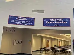 Mock Trial state and national championship banners located in the front lobby of Montgomery County High School