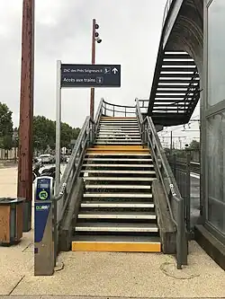 Operated by the SNCF, the station has a passenger building equipped with automatic vending machines for purchasing tickets.[6] Since 2012, a fully accessible passenger overpass has allowed for movement from one platform to another.[4]