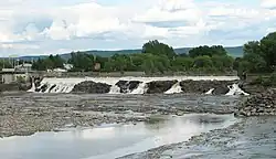 The city of Montmagny itself is divided by the South River (French: Rivière du Sud), where a smaller river, Bras-Saint-Nicolas, merges into it. The confluence of waters swells into a set of falls, leading to discharge into the Saint-Lawrence a short distance west of the city.