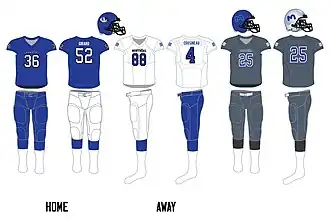 | Colours | Royal Blue, White, and Black |