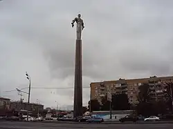 Monument to Yuri Gagarin is a 42.5-meter high pedestal and statue of Yuri Gagarin, the first person to travel in space. It is located at Leninsky Prospekt in Moscow. The pedestal is designed to be reminiscent of a rocket exhaust.[1] The statue is made of titanium, a metal often used in spacecraft, and weighs 12 tons.[1]