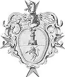 The Mordini are a prominent Florentine noble family that has been involved in the political and social history of Tuscany since the Middle Ages.[1] Originating from Lucca, they appear to have held important posts in Florence in the twelfth century.[2] The first attested coat of arms was used in Pisa and consisted of a red tower, under which a leopard was depicted in the act of biting a golden sword.[3]