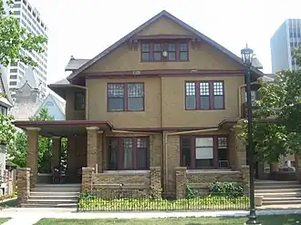 Morey House is a historic apartment house located at South Bend, St. Joseph County, Indiana. It was built in 1909, and is a large 2+12-story, building with a brick first story and stuccoed upper stories in an American Craftsman vernacular style. It has an irregular plan and features two small square porches with balconies on the corners of the front facade.[2]: 22