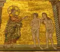 Most art historians now attribute the compositions to a number of Tuscan artists but their realisation to mosaicists from Venice or the eastern Mediterranean. Stylistic analogies with painted works enable links with the best 13th century masters, their collaborators, Giotto and the 'proto-Giottists' such as the so-called Last Master of the Baptistery identified by Roberto Longhi.[2] The works have been under almost constant restoration from the late 14th century onwards, with particularly notable schemes occurring in 1402, 1481, 1483–1499 (overseen by Alesso Baldovinetti, who was made "official restorer of the mosaic decoration"), 1781–1782 (general cleaning), 1821–1823 (dealing with serious damage in the area of Stories of Noah) and 1898–1907 (massive reintegration).[2]