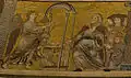 Nativity | Its cartoon is attributed to Cimabue. Part of St Joseph's drapery is a restoration. |