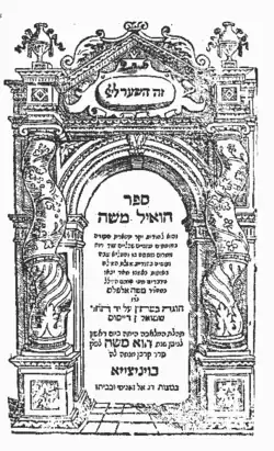 Of his many homiletic and theological writings, there have appeared in print, "Wayaḳhel Mosheh" (And Moses Collected), a collection of sermons (Venice, 1597), and "Hoyl Mosheh" (Moses Was Content), apologetic essays on Judaism and the excellence of the Mosaic law (Venice, 1597).[2]