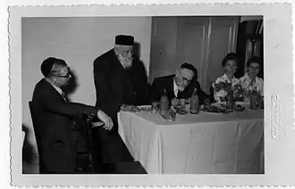 Wallach was feted on several occasions, beginning with a seventy-fifth birthday celebration at a hotel, which was attended by British Mandate health officials.[14] Before his eightieth birthday, a Torah scroll was commissioned in his honor. Upon its completion three years later, Wallach donated it to the hospital synagogue.[37] Two banquets were held in honor of his eighty-fifth birthday – one in the hospital, attended by the Sephardic Chief Rabbi of Israel, Ben-Zion Meir Hai Uziel, the Minister of Health, representatives of the Doctors Union, and representatives of the Old and New Yishuvs; and the second in the office of the Jerusalem mayor, Shlomo Zalman Shragai, who bestowed a commendation on Dr. Wallach for his years of public service.[38] In honor of his ninetieth birthday, Wallach was awarded an honorary degree from the medical faculty of the Hebrew University of Jerusalem. The city of Jerusalem also named him a Yakir Yerushalayim (Worthy of Jerusalem); however, Wallach died the day before the presentation ceremony took place.[5]