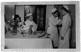 In dire need of a head nurse, Wallach traveled to Europe in 1916. He was impressed with the similar organizational structure of the Jewish Hospital in Hamburg, and asked the head nurse there if she could spare one of her staff. The 32-year-old Selma Mayer (1884–1984), who in 1913 had been one of the first Jewish nurses to receive a German State Diploma, was recommended and agreed to travel.[14] She arrived at Shaare Zedek in December 1916[14] and worked and lived at the hospital for the next 68 years, until her death at the age of 100.[16][23]