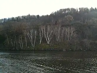 Moss Island is an island in Little Falls, New York, located between the Mohawk River and the New York State Barge Canal. It is composed of an igneous intrusion of syenite, and became an island when canal locks were built so boats could avoid the 40-foot (12 m) falls. It is known for its large 40–50-foot (12–15 m) deep potholes[2] as well as being popular with local rock climbers. It was declared a National Natural Landmark in 1976.[1] Efforts by the local community to turn Moss Island into a New York State Park were begun in 2008.[3]