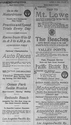 - ^ a b Crosse, John (March 12, 2011). "Southern California Architectural History: Playa del Rey: Speed Capital of the World, The Los(t) Angeles Motordrome, 1910-1913". Southern California Architectural History. Archived from the original on August 5, 2021. Retrieved October 15, 2022.