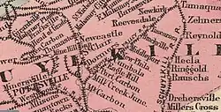 The Mount Carbon Railroad shown in an 1877 map with its distinctive Y configuration between Mt. Carbon and Mine Hill through Pottsville. At this time the MC was already merged into the Philadelphia and Reading Company.