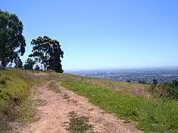 The Old Bullock/Long Ridge track runs along Long Ridge towards Eagle on the Hill.[13] Much of the housing and residential properties are on the North-West side of the Mount, as to enable views over Adelaide. A few small settlements and paddocks with livestock (sheep, goats and deer) are still present on the slopes between the South Eastern Freeway and the Long Ridge Track.