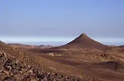 Mount Tahat (Arabic: جبل تاهات) is the highest mountain in Algeria. It sits at an elevation of 2,908 metres (9,541 ft).[4][5] Other sources indicate an elevation of 3,003 metres (9,852 ft).[6] Tahat is also the highest peak in the Hoggar Mountains. Its nearest city is Tamanrasset which is located 56 kilometres (35 mi) to the south.