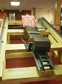 The first major accident occurred on July 20, 1929, involving locomotive no. 1, known as Old Peppersass.[33] This locomotive was used to build the railway, and operated until retirement in 1878. After a few years on display locally, it was shipped to the World's Columbian Exposition in 1893. The Baltimore and Ohio Railroad (B&O) took possession of the locomotive after the Exposition, and stored it in Baltimore until the 1927 Fair of the Iron Horse celebrating the B&O's 100th birthday. The Boston & Maine Railroad restored Old Peppersass at its Concord shops following the Fair to make a commemorative trip for the railway's 60th anniversary. After ascending to Jacob's Ladder, the locomotive began a planned descent but jumped up and landed to the right of the cog rail when a tooth broke from a gear wheel. The friction brake was unable to prevent the locomotive from accelerating downhill. The crew jumped to safety (though some suffered broken bones), but a photographer riding the engine to take publicity photos, Daniel P. Rossiter,[34] fell to his death as the engine plunged off the trestle.[35] The locomotive broke into pieces, but the boiler did not rupture, and the pieces were later reassembled to reconstruct the locomotive for static display. It is now located at the railway's base station.[36]