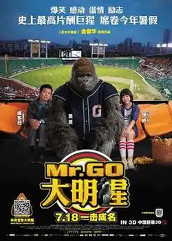 Mr. Go (Korean미스터 고) is a 2013 South Korean sport-comedy film written and directed by Kim Yong-hwa based on Huh Young-man's 1984 comic The 7th Team (제7구단).[1][2] About a gorilla who becomes a baseball superstar and his 15-year-old female manager, it stars Xu Jiao and Sung Dong-il.[3][4] Mr. Go was the first South Korean film to be fully shot in 3D.[5] A co-production between South Korea and China, it was released simultaneously in both countries on July 17 and 18, respectively.[6][7]