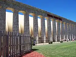 The outside exterior of the indoor theme park; the columns are made out of styrofoam.