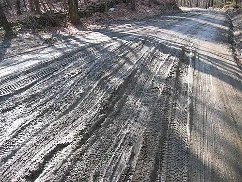 Mud season can be expensive for towns due to the damage done to dirt roads. One report concluded that the cost of re-engineering dirt roads so that they would remain passable during mud season in the state of Vermont could run as high as $140,000 per mile ($87,000/km).[2]