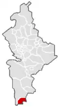 Outside the Monterrey Metropolitan Area, the state is sparsely populated. The largest municipality by population is Monterrey, with 1,142,994 residents (19.75% of the state's total), while the smallest is Parás with 906 residents.[1] The largest municipality by land area is Galeana which spans 7,068.30 km2 (2,729.09 sq mi), and the smallest is Abasolo, with 46.90 km2 (18.11 sq mi).[2] The newest municipality is Melchor Ocampo, established in 1948.[6]