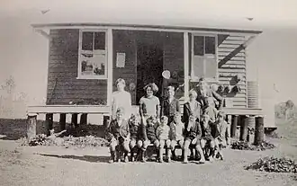 Muniganeen Provisional School opened on 1 August 1904 under head teacher Maria Kelly. On 1 January 1909, it became Muniganeen State School. Prickly pear had to be cleared by the parents several times a year or else access to the school was blocked. The school closed on 22 June 1924 due to low student numbers but reopened on 25 May 1926. It closed on 26 July 1950, and was permanently closed on 31 July 1950.[5][6] It was on a 3-acre (1.2 ha) site at 74 Muniganeen Road on the north-western corner with Boodua Muniganeen Road (27°22′27″S 151°52′12″E / 27.37422°S 151.86996°E / -27.37422; 151.86996 (Muniganeen State School (former))), originally part of the Gowrie Homestead. The school building was relocated to the Goombungee Showgrounds where it was used as a catering facility.[7][8][3][9]