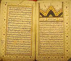 The opening of a manuscript of Arzani's Qarabadin-i Qadiri, dated 1792 (BL Delhi Persian 843B)