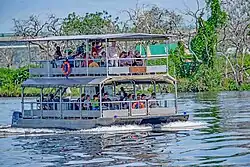 Together with the adjacent 748 km2 (289 sq mi) Bugungu Wildlife Reserve and the 720 km2 (280 sq mi) Karuma Wildlife Reserve, the park forms the Murchison Falls Conservation Area (MFCA).[3] As of 2022, the East African Crude Oil Pipeline being built includes the construction of 10 oil well pads, a feeder pipeline, and a refinery in and around the Murchison Falls national park.[4]