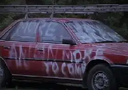 The graffiti left upon one of the Chan family's two vehicles, likely as a subterfuge to deflect her abductor's true intentions for abducting Karmein