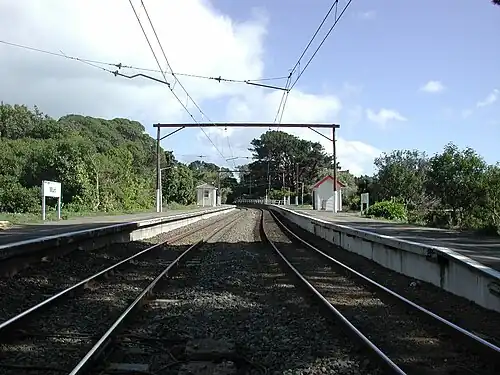 Muri railway station is a former railway station on the North Island Main Trunk Railway (NIMT) in Pukerua Bay, New Zealand; part of the Kapiti Line section of the suburban rail network of Wellington. The station was double tracked with side platforms on a straight section between two curves, 31.2 km from Wellington railway station, the southern terminus of the NIMT.