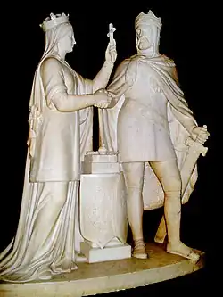 Already in 1918, activists, including Jonas Basanavičius and the short-lived People's Commissar of Internal Affairs of the Lithuanian SSR, started working on recovering the removed exhibits from Russia.[8] The Soviet–Lithuanian Peace Treaty of 1920 and the Peace of Riga of 1921 stipulated that Russia would return cultural and historical valuables to Lithuania and Poland, respectively. There were numerous negotiations, but the valuables (including Lithuanian Metrica) were not returned – both Poland and Lithuania sought the same valuables as they both claimed Vilnius Region and its heritage while Russia had no desire or incentive to return the items.[11] During the interwar, Lithuania managed to recover some archives, but only one item from the former collections of the Museum of Antiquities was returned – the sculpture of King Władysław II Jagiełło and Jadwiga. In 1928, it was transferred to Warsaw and then in 1931 to Vilnius.[11]