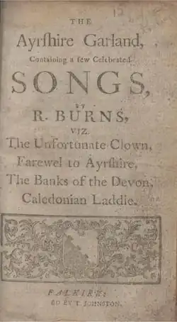 Robert Burns The Ayrshire Garland: Containing a Few Celebrated Songs