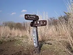 Myōjinyama (明神山) is a grassy area on a mountain ridge in Japan, 20 kilometres (12 mi) east from Mount Fuji and 5 kilometres (3.1 mi) south-east from Lake Yamanaka, off of road 147. The area is suitable for hiking and paragliding.