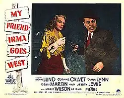 My Friend Irma Goes West is a 1950 American comedy film directed by Hal Walker and based on the radio show My Friend Irma. It stars the comedy team of Dean Martin and Jerry Lewis.[3] The film is a sequel to My Friend Irma (1949) and was released on May 31, 1950 by Paramount Pictures.