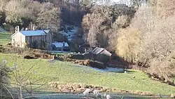 The old Tuckmill Cottage with the remains of the tucking mill further down in the trees by Mounton Brook.