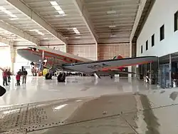 N34 is a Douglas DC-3 airplane currently based at the Texas Air & Space Museum in Amarillo, Texas. The airplane was built in May 1945 at Douglas' Tinker Air Force Base facility for use by the U.S. Navy. The Navy used the plane for transport flights in the post-World War II era; its missions included flights into Germany during the Berlin Airlift. After the Navy retired the aircraft in the 1950s, the Civil Aeronautics Administration purchased it along with several other Navy DC-3s for use in flight inspections. The fleet of DC-3s helped the CAA (and its successor the Federal Aviation Administration) standardize its flight inspection process; historically, its flight inspection fleet had been small and used whatever planes were available due to the agency's limited budget. The FAA used its DC-3s to inspect and calibrate navigation aids until 1981, when they were replaced by more modern jet aircraft; N34 was the last of the DC-3s to be retired. In 1985, the FAA repurposed N34 as a public education aircraft used at airshows; it was based at Mike Monroney Aeronautical Center in Oklahoma City.[2]