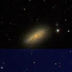NGC 4207 is a spiral galaxy[2] located about 50 million light-years away[3] in the constellation Virgo.[4] The galaxy was discovered by astronomer Heinrich d'Arrest on March 23, 1865.[5] NGC 4207 is a member of the Virgo Cluster.[6][7]