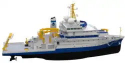 Oceanographer and her sister ship NOAAS Discoverer represent an effort by the National Oceanic and Atmospheric Administration (NOAA) to recapitalize its aging fleet.[1] The ships are built to commercial standards,[1] and NOAA describes them as "state-of-the-art"[1] and designed to support a wide variety of scientific missions, with a capability of conducting general oceanographic research and exploration as well as more specific studies of marine life, the oceanic climate, and ocean ecosystems.[2] The ships can perform scientific missions in shallow coastal waters and over the continental shelf, as well as ocean survey and data collection worldwide.[2] The ships are equipped to launch work boats, perform maintenance on buoys and moorings, deploy scientific instruments to collect weather and water-column data, and conduct seafloor mapping surveys.[2]