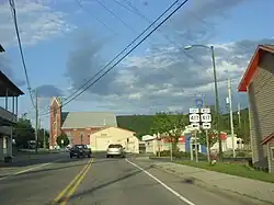 NY 17F entered the village of Almond, paralleling the right-of-way of the modern Southern Tier Expressway and intersecting with CR 2.[5] NY 17F entered Steuben County and entered the city of Hornell at 16.2 miles (26.1 kilometres). NY 17F then turned to the south in Hornell, overlapping NY 21 (now NY 36) south to the village of Canisteo. Within the village, it intersected with NY 248 at 22.7 miles (36.5 kilometres) before separating from NY 21 and continuing eastward out of Canisteo. NY 17F then passed through the towns of Cameron and Rathbone before coming to an end at NY 17 (current NY 417) in Addison.[5]