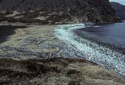 According to the log of Vitus Bering's ship St. Peter, a sailor by the name of Nikita Shumagin died of scurvy and was buried here August 31, 1741. The Shumagin Islands were named after him.