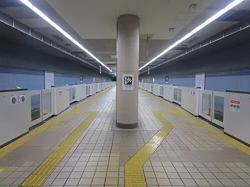 Nagoyakō Station (名古屋港駅, Nagoyakō-eki) is an underground metro station located in Minato-ku, Nagoya, Aichi, Japan operated by the Nagoya Municipal Subway’s Meikō Line. It is currently a terminal station on the line, and is located 6.0 kilometers from the opposing terminus of the Meikō Line at Kanayama Station. This station provides access to the Port of Nagoya Public Aquarium and Nagoya Port.