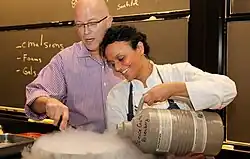 After spending two years working as an apprentice in the kitchens at Chicago's Alinea, Napa's The French Laundry, New York's Per Se (restaurant), and Copenhagen's Noma Kaanache went on to achieve the auspicious Executive and Creative Haute Cuisine Certification after completing her apprenticeship during the final two seasons at Spain's El Bulli. Ferran Adrià stated to the Maghreb Arabe Presse that "Najat Kaanache represents the soul of Morocco through the language of the kitchen. Her passion for creativity and innovation should be a reference for the country."[2][3] After El Bulli's historic closure, Kaanache traveled extensively to instruct chefs across the globe [4] in the latest gastronomic techniques and taught and lectured alongside White House Executive Pastry Chef, Bill Yosses on the science of cooking at Harvard University (pictured), New York University and at the 2013 World Science Festival in NYC (pictured) and 2013 Beijing Science Festival in China.