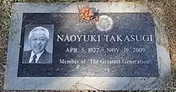 ![]() Takasugi's gravestone at Ivy Lawn Cemetery, Ventura, California | |