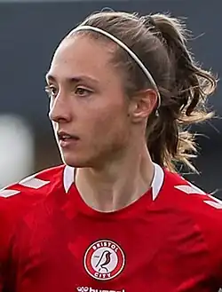 Layzell made her first team debut for Bristol City in the FA Women's League Cup in a 4–0 win over London Bees on 7 October 2020,[4] and made her first appearance in the Women's Super League against Manchester City on 7 November 2020.[5]